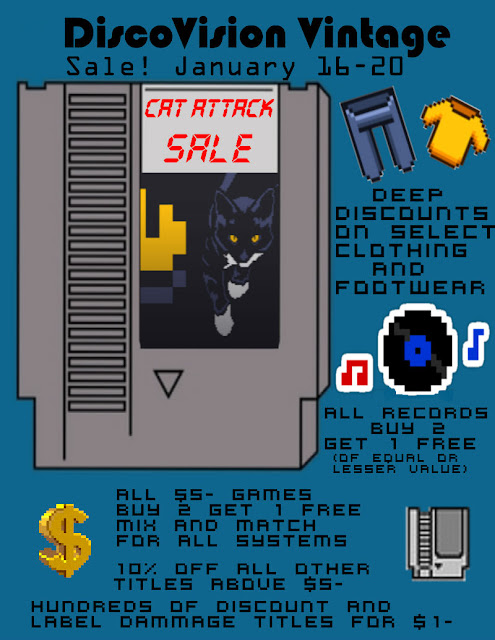 Hey all, thanks for supporting us in nearly 3 months of business at our new store. It's been pretty awesome so far. On a sadder note our cat Birdy (the DiscoVision mascot) died the same week that our store opened. While we will never be able to replace Birdy the cat, we did get a new cat for Christmas. In celebration of our new kitty Ms. Peel, and 3 months of awesome business in our new store we are having a sale this week.